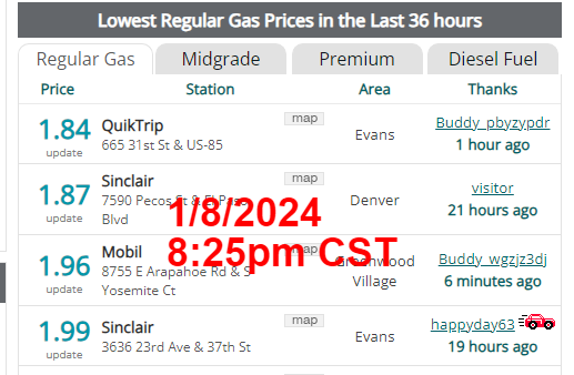 PP must just sit in their basement listening to Trump say gas is still 8 bucks a gallon. There are stations where it’s less than $2 now. |