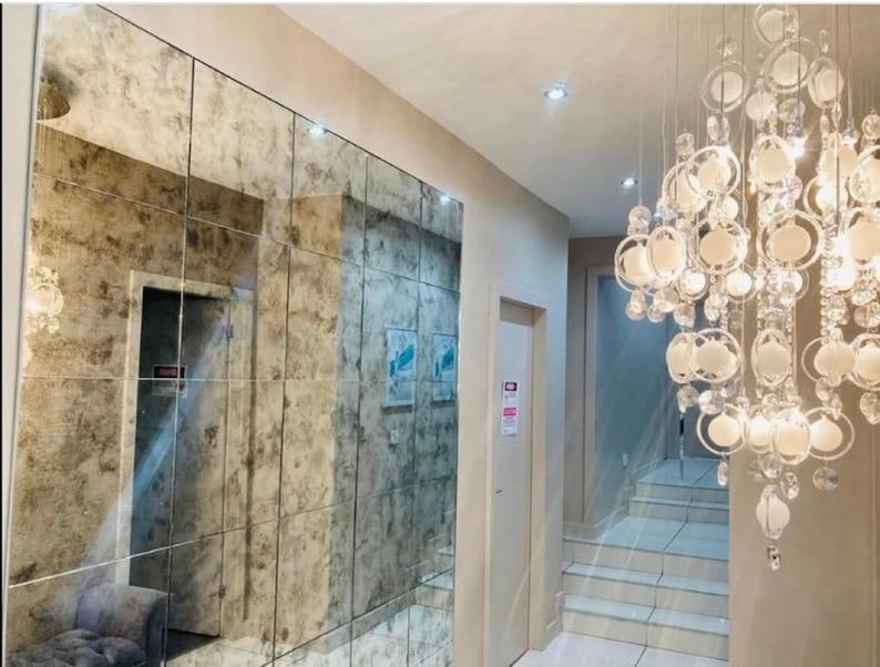 | If you want a mirror for exercise, I see why you'd do this but agree that aged mirror squares don't look nice. I would find a tall arched mirror instead. It will look better than a wall of just mirrors but also lean into that vintage vibe you seem to be after. HomeGoods always has many options, so does Wayfair. I would measure the space to see exactly how large you could get first. |