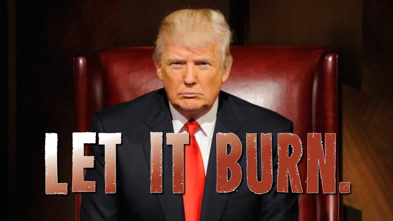 | Trump is happy that Napa valley and Sonoma have burnt to a crisp because it means more business for Trump winery. |
