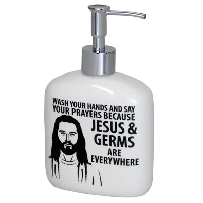 This is an authentic product, check the website: www.catholicgiftsandmore.com https://www.catholicgiftsandmore.com/product/jesus-and-germs-soap-dispenser-w4300?utm_source=google&utm_medium=cpc&utm_campaign=MerchAdv&gclid=EAIaIQobChMI-L-0kJyF6AIVDJ-fCh34Dw13EAQYASABEgIcp_D_BwE