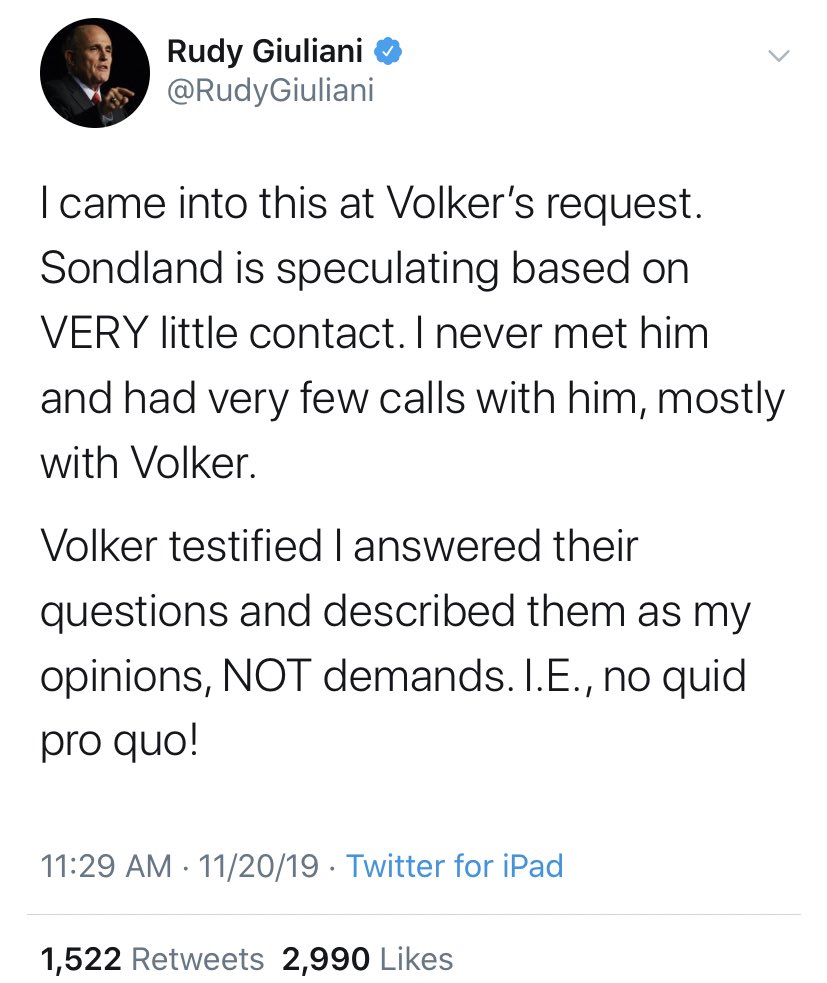 Yep. This makes me wonder... Was the “drug deal” code for something else? I noted that Ambassador Sondland was proud to be one of the “three amigos”. Really like and respect his candor. |