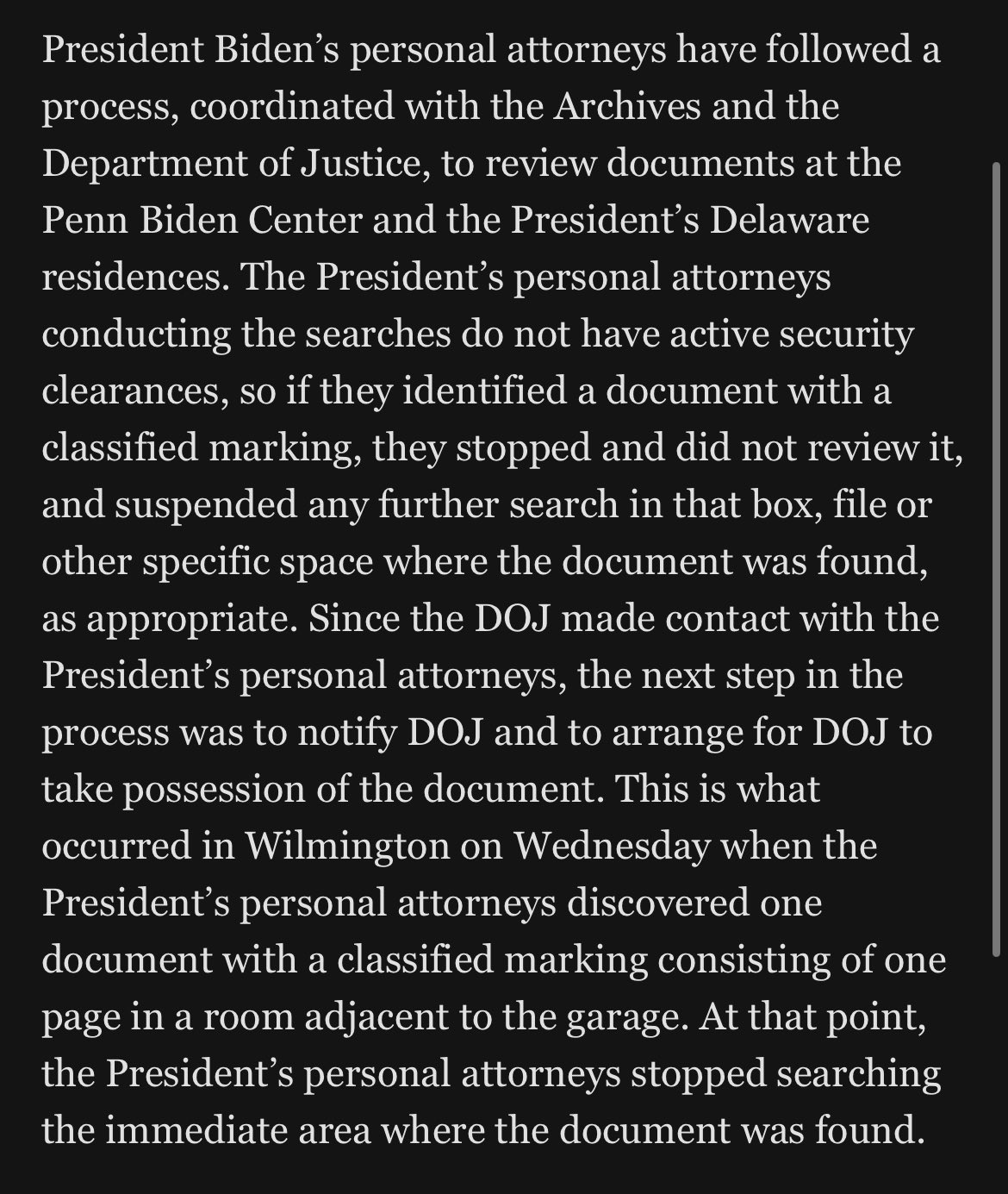 And then they notified Biden's personal attorney to look at the Biden's garage? Why not to notify DOJ directly? |