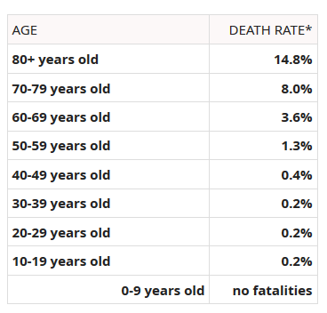 WHO CDC and other institutions supporting this data site and providing all the info that is in the cited source: https://www.worldometers.info/coronavirus/coronavirus-age-sex-demographics/ |
