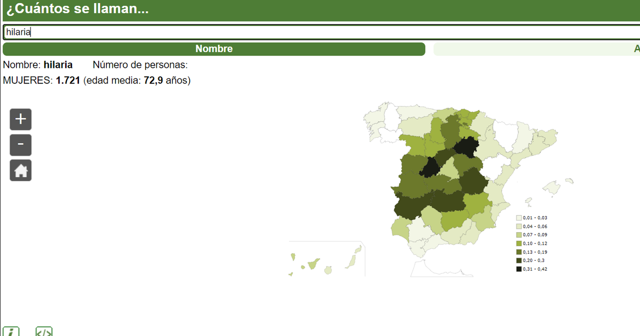 I am real spanish girl and I have bought for a long time that she was spanish. Her accent is really good but the truth is I have only heard her say simple sentences. What I found super weird was her name. You can hear Hilario for men, but Hilaria is very rare, and they are both super old fashioned. I though she must have been named after a grandmother or something, and it still surprised me in someone her age. If I had been named Hilaria, I would totally prefer to go by Hillary in english. It is not so difficult to say for a spaniard. If her parents who vacationed in Spain have wanted to gave her a spanish name, they would just have needed to ask a local to know that Hilaria was not commun nor a good option. I cant really buy her explanation on the name thing. You can see below there are just 1.700 hilarias in spain and their average age is 73 years old. Barely anyone in Mallorca.