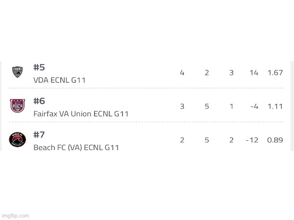 Everyone else’s rejects? Broken spirits?? ROFLmao 2012s are #1 and 2013s are #2. And the 11s are only one game behind VDA. Please stop with the troll posts my guy/gal/ai. The colleges will decide utilizing their own assessments and bodies of work. Not instagram posts and meaningless ID call ups.