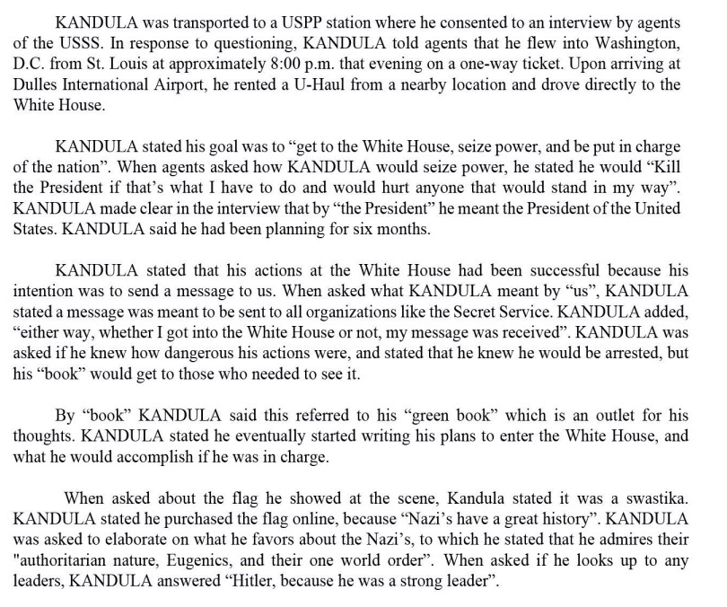 This is scary as the accused doesn't seem to have a very good grasp of either Nazis or Hitler. The Eugenics that he cites refers to any non-Aryan, which includes Kandula, himself. As a dark-skinned non-Aryan, he would be considered impure and a target for the Eugenics. And Hitler himself would have looked down upon Kandula with disgust as he would have been considered racially impure. |