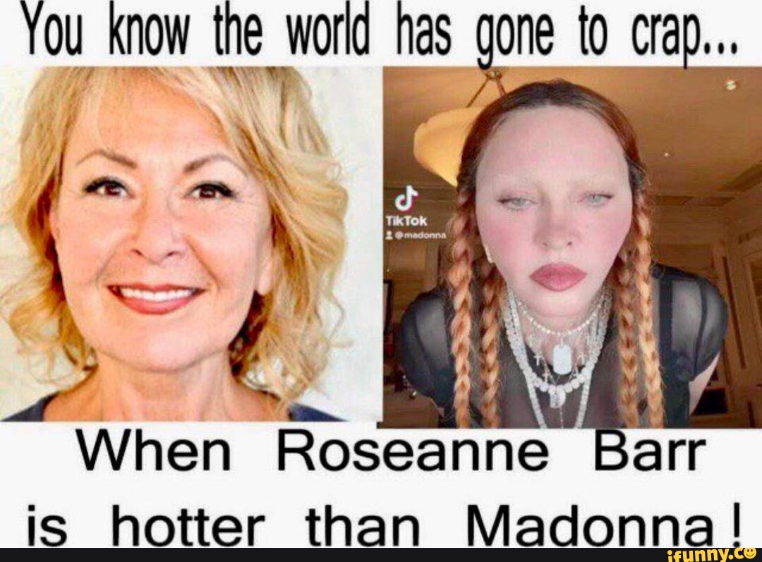 Funny how she was the ugly chubby actress in the 1990s and Rosie O'Donnell was considered the cute one. Look at them now, Rosanne is way more attractive than ever and R. O'Donnell is beyond OOF!. Or Madonna even!