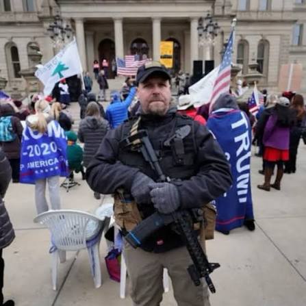 That's not brandishing. He's also not concealing his identity. What's the problem? |