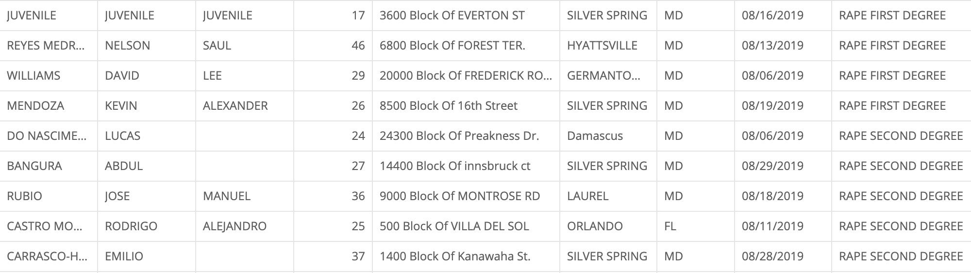Here's MCPD's 2018 annual crime report: https://www.montgomerycountymd.gov/POL/Resources/Files/PDF/PDResources/MCPD_Annual%20Report%20Crime%20Safety_2018.pdf Page 9 shows: 277 forcible rapes reported and then other sex offenses like forcible sodomy and fondling and forcible fondling. The post showing arrests from August are only for rape charges. |