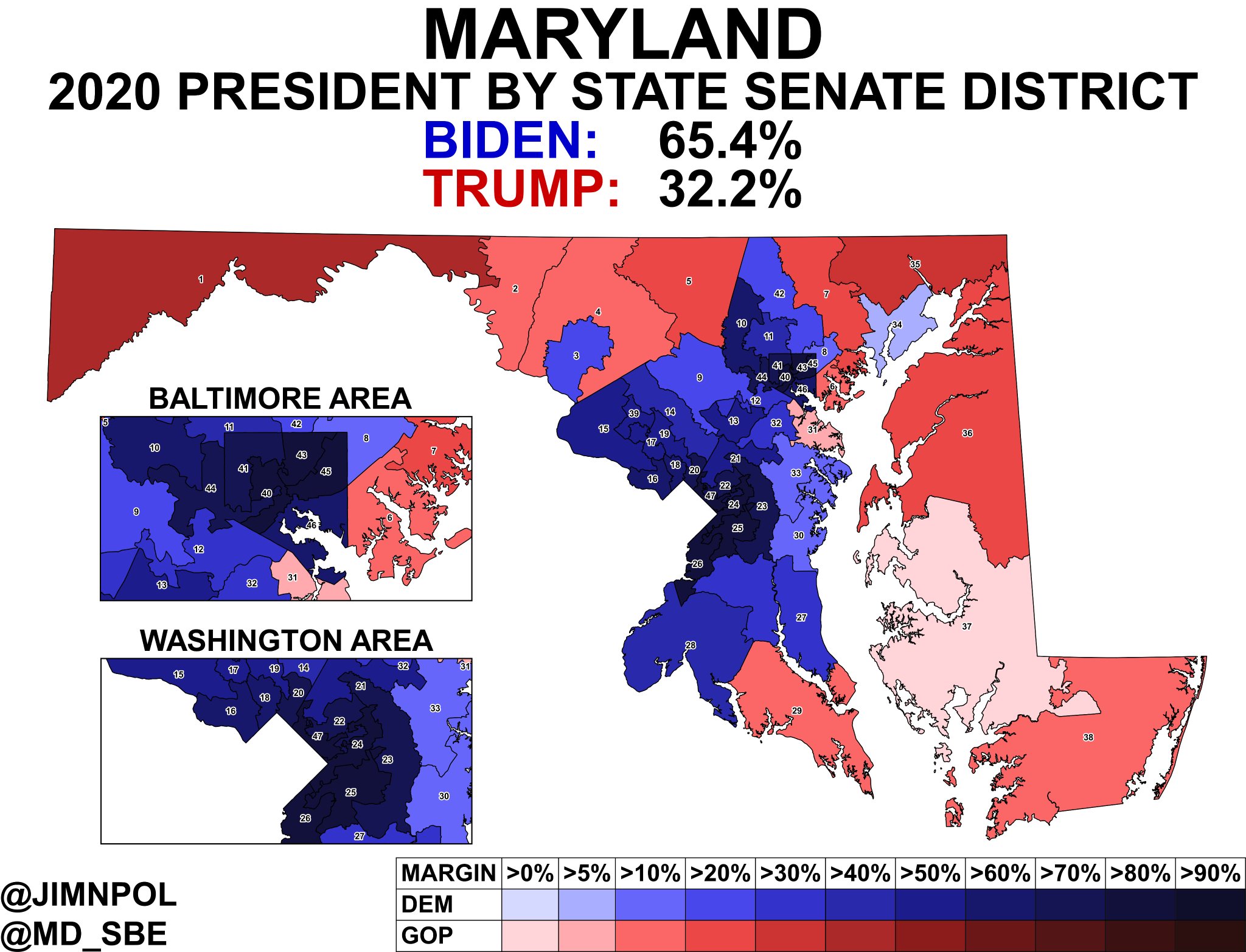 I did the math earlier and Trump's votes in counties he lost were about 60% of his total vote in MD. He got more votes in each of Montgomery, Baltimore County, and Anne Arundel than he did in any of the counties he won. |