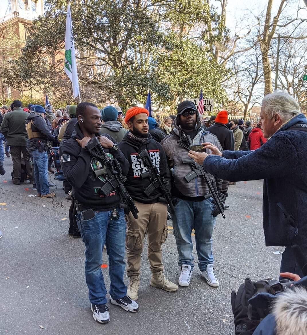 From that photo, and all the other photos of culturally-diverse people at yesterdays peaceful event: - it does not seem to have been a white supremacy event at all. Furthermore, the police emphasized there wasn't a single arrest made at all during this event (and the participants even cleaned the streets of litter/trash on their way home). Also saw photos of LGTBQ gun owners welcomed at that march (they apparently have their own group "Pink Pistols") and plenty of woman who oppose these proposed bans (along with over 90 of VA's 95 counties that voted sanctuary status / refuse to enforce any new gun ban passed by the dems). |