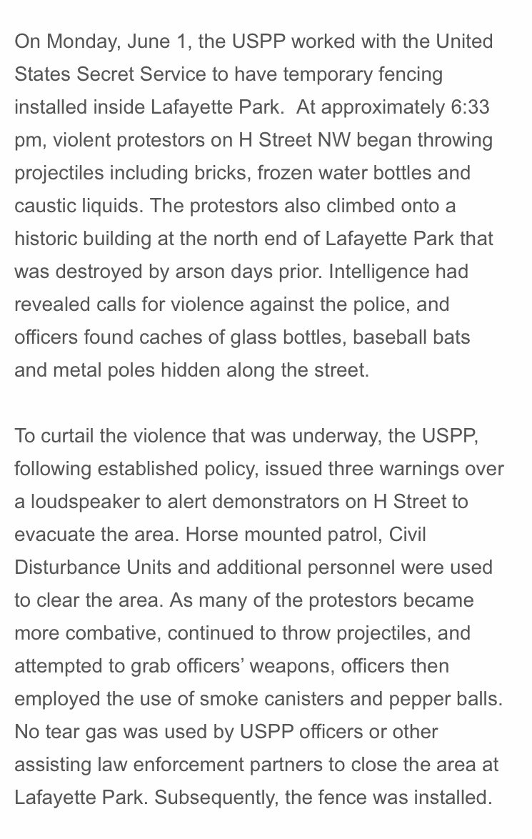 WTOP has a reporter on site when this went down and their statement doesn’t match what he saw. He was live on the air when it happened. At this point I’ll trust him over the park police. |