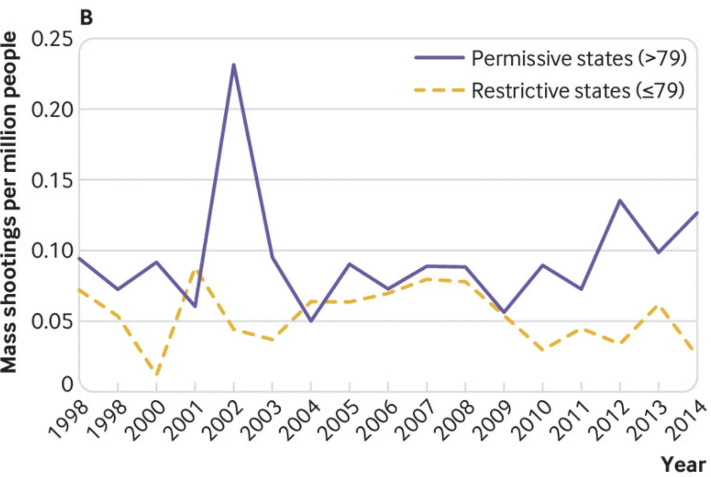 "More armed guards!" Armed security guard failed in Buffalo grocery store. Armed school resource officer failed in Florida. Armed police afraid to enter school in Ulvade. "Locked doors!" Failed in Tennessee. "Mental illness!" GOP blocks mental illness support bills And then this. The fact that mass shootings are clearly more likely to happen in states with less restrictive gun laws.