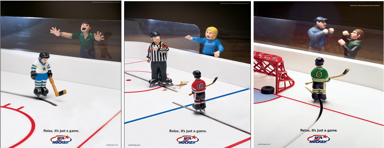 Here is 3 images that for parents of hockey players: https://cdn4.sportngin.com/attachments/photo/3747/5818/justagame.jpg I was shocked the first time I went to see a mite game (8U ice hockey game). Some parents of little 6U were nuts, they shouted eff and bees at each other just for watching kids playing. |