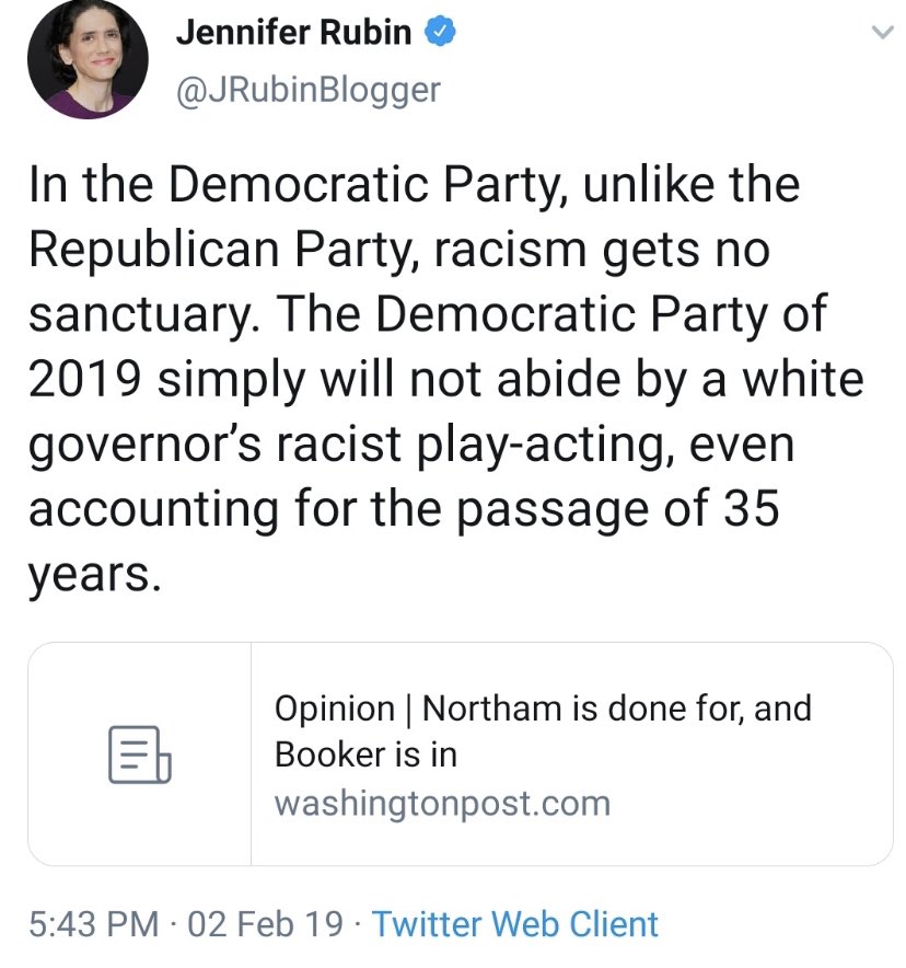 The biggest calls for Northam’s resignation were from far left-wing whites and younger black politicians just looking to push out older politicians to advance their own careers and personal fortunes. People who know Northam personally generally think highly of him, which can’t be said of too many politicians in Virginia. For example, very few people actually like Terry McAuliffe as a person. He’s influential entirely as a result of his overwhelming ambition and access to money. |