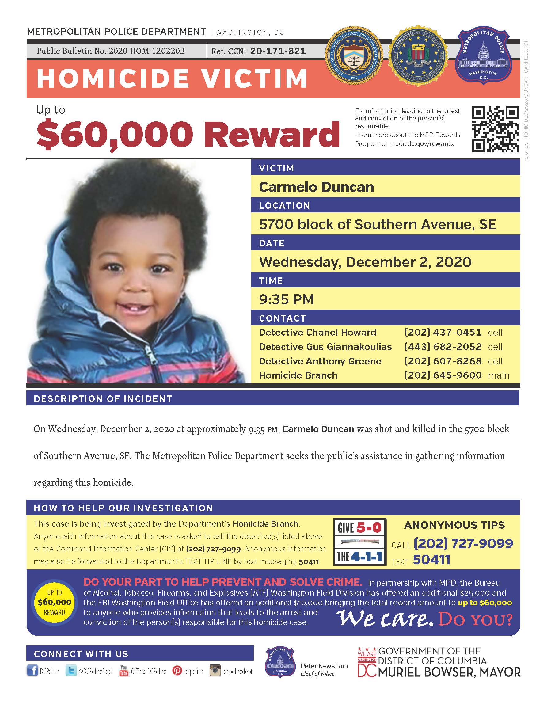 Highest in 15 years. https://wjla.com/news/local/60k-reward-announced-baby-carmelo-killer He was only 15 months old.