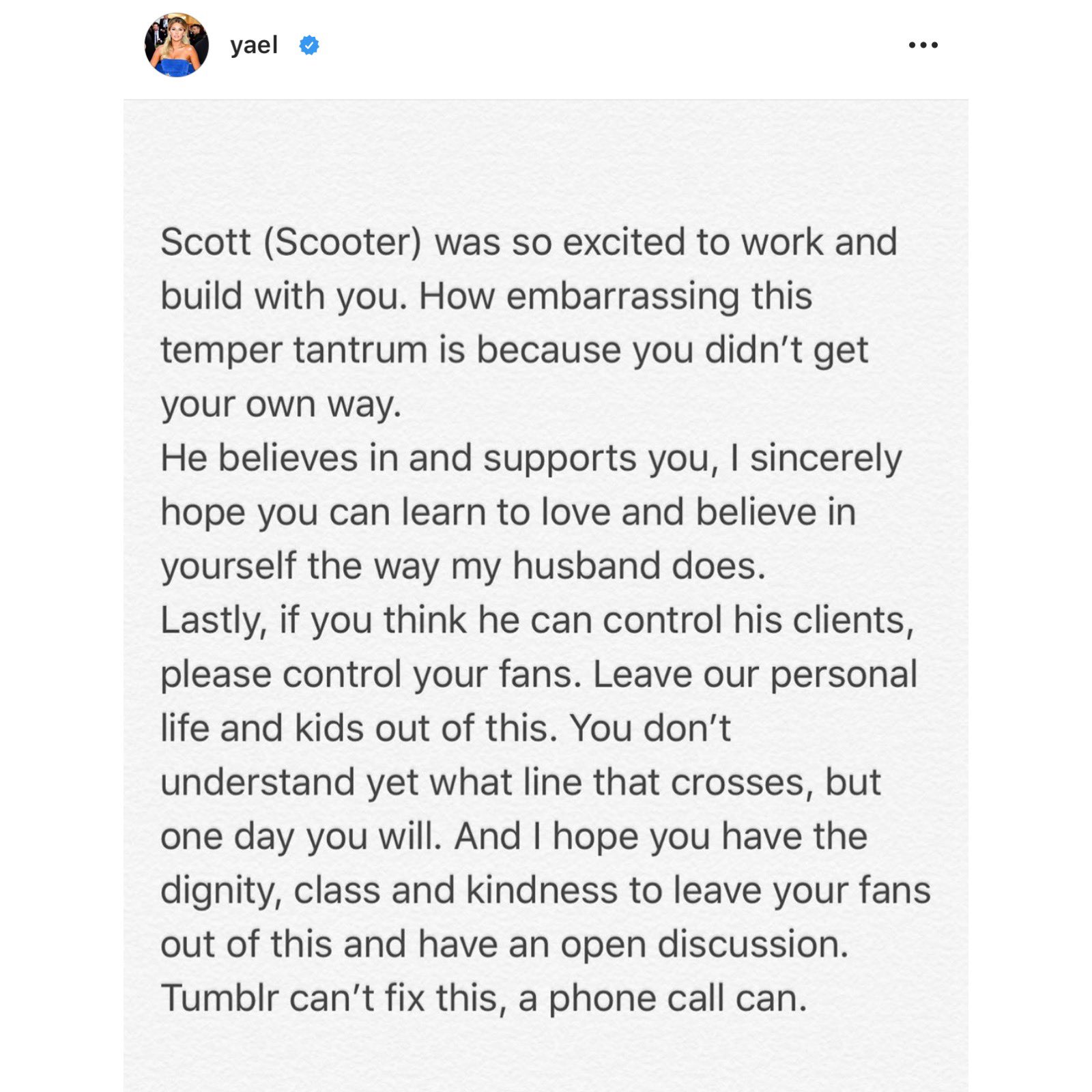 The only reason I know the wife's name is because she blasted Taylor Swift for coming after Scooter over legitimate music production disagreements and mocked Taylor for not having a family.